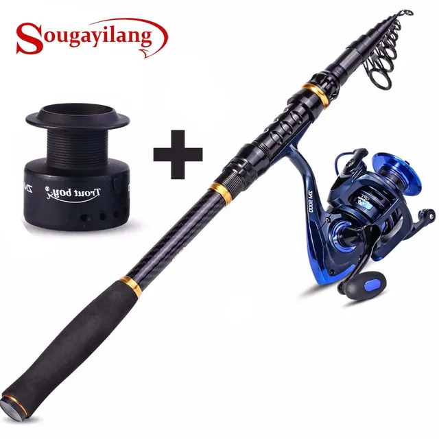 Best Price Sougayilang 1.8-3.6m Telescopic Fishing Rod and Spinning Reel with Spare Coil Sets Portable Carp Fishing Rod Reels Combo pesca