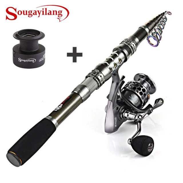 If you are looking for a perfect combination of reel and rod telescopic rod, then Sougayilang Portable Telescopic Fishing Rod will obviously be your first choice. Its super sturdy construction and convenient carrying facility. Also heavy weighing capacity makes it list at the very top of our best telescoping fishing rod reviews over $30.,PLUSINNO Travel Spinning FULL Fishing Rod Combos Carbon Telescopic Fishing Rod Pole with Reel Line Lures Hooks and Accessories Combo Sea Saltwater Freshwater Kit Fishing Rod Kit Amazon.com Price: $ 48.99 $ 39.99 (as of 02/04/2018 07:02 PST- Details),Amazon.com : Sougayilang Fishing Rod Combos with Telescopic Fishing Pole Spinning Reels Fishing Carrier Bag for Travel Saltwater Freshwater Fishing : Sougayilang Spinning Fishing Rod and Reel Combos Portable Telescopic Fishing Pole Spinning reels for Travel Saltwater Freshwater Fishing 3.7 out of 5 stars 121. $38.82 - $68.98.,If you love fishing, I know you are wondering if telescopic rods are any good and you sure would use some expert advice on the best telescopic fishing rods. From my experience, I believe I am in a good position to recommend a telescoping rod for you.,1.3 Sougayilang Telescopic Saltwater Freshwater Fishing Rod with Reel Combos; #4 Plusinno Spinning Rod and Reel Combo When you close it, the pole becomes easily portable and compact enough to fit in all kinds of tight areas. Its anti-reverse, too, giving stability when trawling. ,We Searched Sougayilang Fishing Rod Combos with Telescopic Fishing Pole Spinning Reels Fishing Carrier Bag for Travel Saltwater Freshwater Fishing free shipping info, 2019 reviews, and prices over the last 3 years for you at fishing-rod.,Amazon.com: Sougayilang Spinning Fishing Rod and Reel Combos Portable Telescopic Fishing Pole Spinning reels for Travel Saltwater Freshwater Fishing: Sports & Outdoors,Sougayilang Spinning Telescopic Fishing Rod Graphite Carbon Fiber spincast and spinning freshwater & saltwater fishing rods & reel combos at Bass Pro Shops. Sougayilang Mini Spinning ,Spinning rod and portable combos sougayilang pursuant to Catchingfishing. Sougayilang combos of telescopic fishing reels fishing reels in saltwater sweet seawater sougayilang combos of telescopic fishing reels, telescopic pitch fishing, freshwater fishing in salt water.,One of the best collapsible/ portable/ telescopic fishing rods. I've been using the Sougayilang Spinning Telescopic Graphite Carbon Fiber Rod over the last year and have been really impressed by