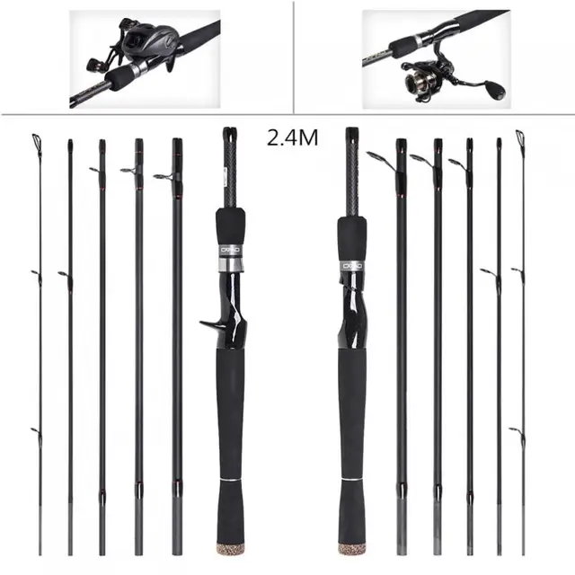 Cheap 2.4m 6 Sections Carbon Fiber Lure Fishing Rod ML Power Ultra Light Spinning Casting Fishing Pole